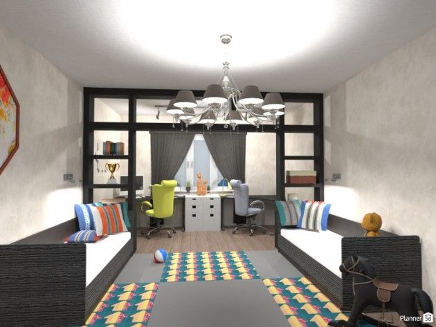 Finding a common interest is a great way to strengthen sibling bonds and tie the room together. But if your kids want privacy, split the room with a partition, curtain, sliding door, or a piece of furniture like a bookcase. Twin beds divide the room equally, but a bunk bed is more suitable if you need to save space.