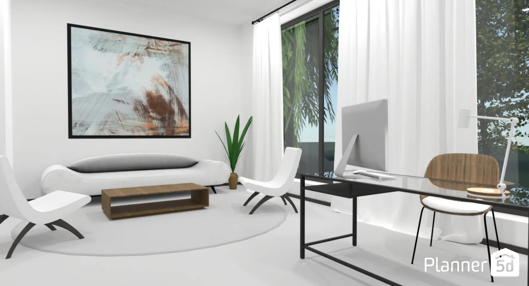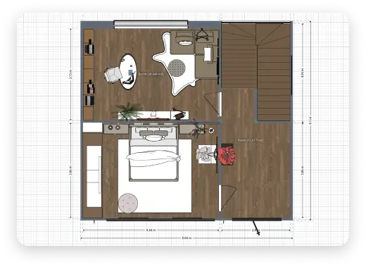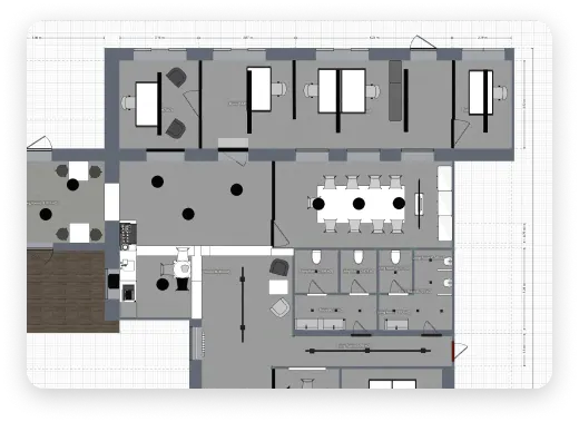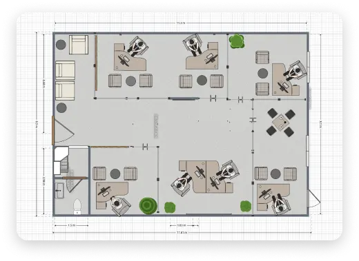 Planner 5D makes creating office layouts a breeze. The user-friendly and intuitive interface, designed for professionals and amateurs alike, lets you design functional and appealing office spaces your employees will love. With an extensive library of items and layouts, you can create everything from commercial offices to home workspaces.