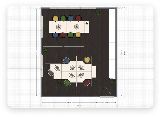 Input your office dimensions, draw walls, doors, and windows. You can choose from pre-existing templates or begin from scratch.